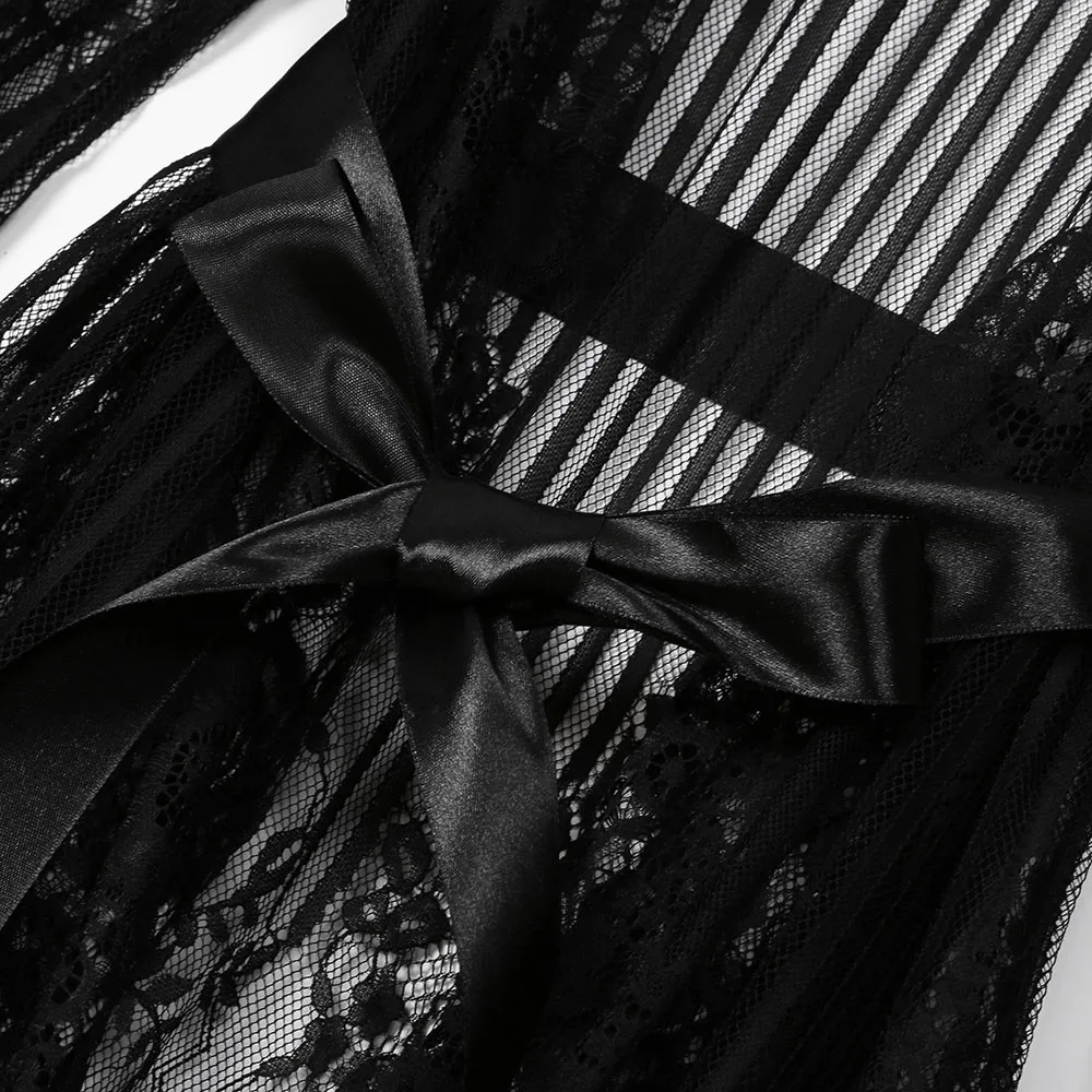 Lace V-Neck Long Sexy Erotic Nightdress Women Bathrobe Night Gowns High Split Open Crotch Sleepwear Maxi Night Dress Lingerie *S